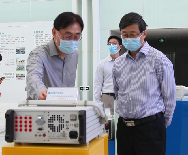 滕乐天董事长一行首先参观了位于博电大厦大厅的展示中心。联研院各位领导仔细查看了博电面向电动汽车及充电设施、大功率半导体检测、智能电网检测等领域势的高精尖仪器设备,对博电自主创新、引领行业的优秀产品给以极大的赞赏。