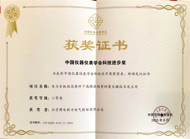 近日,中国仪器仪表学会公布了2025年度科学技术奖获奖名单。由博电科技与国网四川省电力公司电力科学研究院等单位联合开发的《电力系统动态条件下高精度相量测量关键技术及应用》项目,凭借其创新性和实用价值,荣获"科技进步奖二等奖"。“中国仪器仪表学会科技进步奖”是经国家科学技术部批准,由中国仪器仪表学会设立的全国性科学技术奖项,旨在表彰在仪器仪表领域做出突出贡献的科技工作者和团队。该奖项在仪器仪表行业具有极高的权威性和影响力,是衡量行业技术创新水平的重要标尺。
