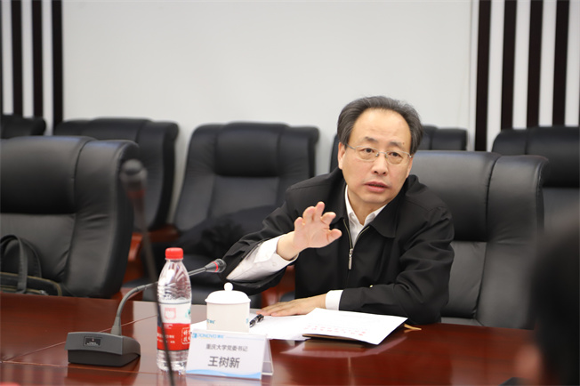 ▲重庆大学党委书记王树新发表讲话