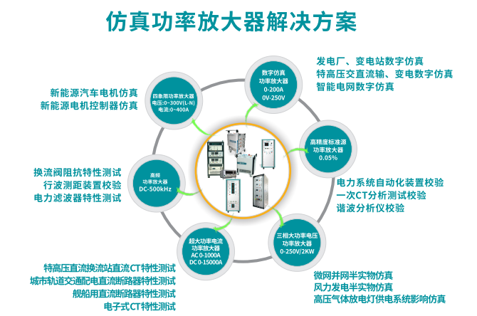 博电定制放大器产品已成功完成±8 0 0 kV向~ 上特高压直流工程整站极控仿真调试,全数字化智能变电站—延安7 5 0 kV智能变电站系统级实时数字仿真测试等国家重点工程仿真测试, 并为中国电力科学研究院、国网电力科学研究院、中国国家继电器检测中心、南方电网公司技术中心等国家级电力检测及权威认证部门提供系列检测设备。专业的功率放大器团队,时刻想用户之所想,不断创新产品系列,满足您期待的各种电力测试需求。